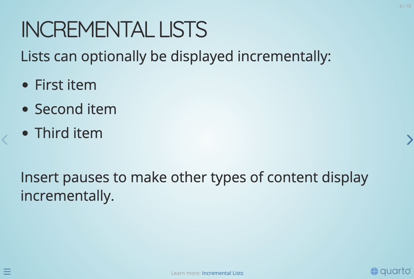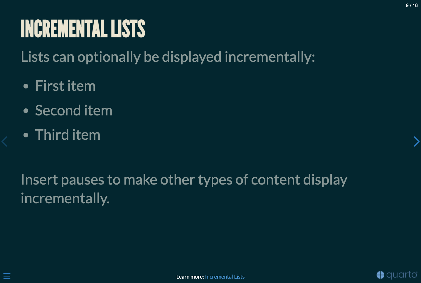 Lists can optionally be displayed incrementally: